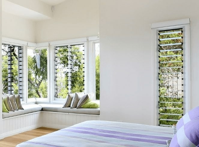 Cửa sổ lá sách đóng vai trò quan trọng trong việc tạo nên sự thông thoáng cho ngôi nhà. Kết cấu chắc chắn cùng khoảng hở giữa các lá sách nghiêng theo một góc cố định, đủ để gia chủ thấy được bên ngoài, nhưng ngăn cản sự quan sát từ bên ngoài vào không sống của gia đình.