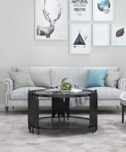 Bàn trà inox mạ PVD trong trang trí phòng khách