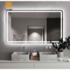- Đèn LED: Ánh sáng vàng ấm Kiểu dáng: Hình chữ nhật Đặc điểm: Đèn led hắt hậu+ có đồng hồ + nút cảm ứng on/off ngay trên gương